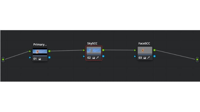 When working with compressed media, altering the luminance of a qualified colour should be avoided as this will result in the visibility of compression artefacts seen in the picture. Many manufacturers have introduced tools within their applications to minimise this issue by softening the qualified matte area. The best results for secondary colour correction or colour qualification can be seen when working with uncompressed or RAW material. A good tip when working in a serial node workflow whereby each node is looking at the effect of the preceding node’s correction is to apply additional saturation in the preceding node’s primary colour correction. This will result in additional colour information and allowing for easier secondary colour correction qualification in later nodes.